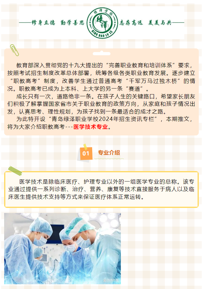 【绿泽|特色专业】青岛绿泽职业学校职教高考专业介绍——医学技术